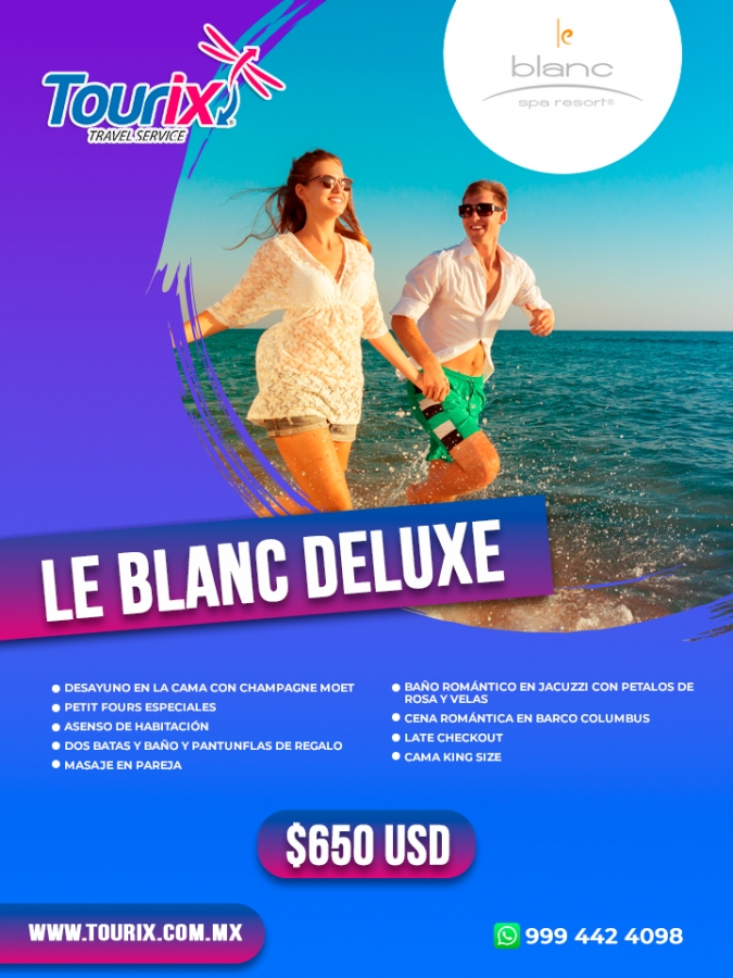 Vive el privilegio de una exclusividad tanto de vacaciones como de luna de miel, en un concepto todo incluido solo adultos, en el paraíso Le Blanc Spa Resort Cancún. Celebra de una luna de miel romántica deluxe  en Le Blanc Cancún, resort que cuenta con arena blanca y mar turquesa, habitaciones de lujo, piscinas tipo infinity, gastronomía de altura y atención personalizada.