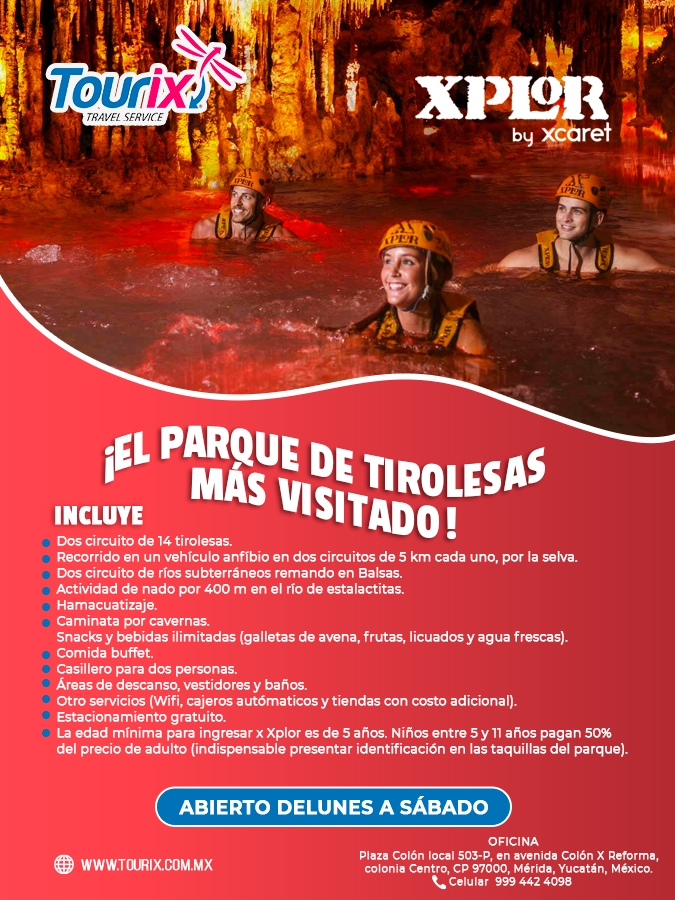 Vive seis nuevas aventuras en un mÃsmo ambiente como ningún otro, rodeado de cavernas, rÃos subterráneos, selva e increÃbles escenarios naturales, lo que lo hace mucho mejor que cualquier parque acuático en Cancún. Como es todo incluido, lo único que necesitas es prepararte para pasar un dÃa lleno de diversión por agua,, tierra y aire. Vive una experiencia liberadora en Xplor, México.